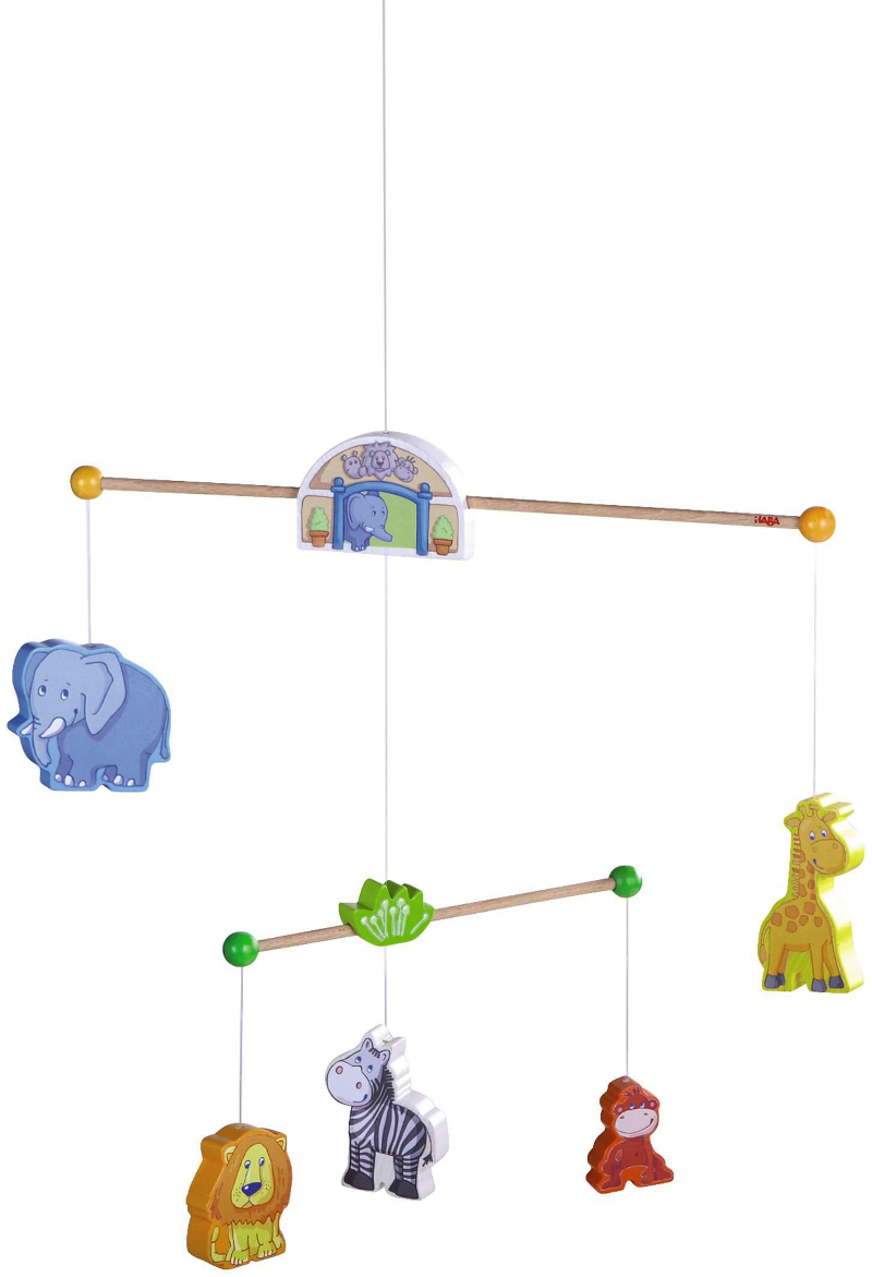 Mobile Zoofreunde, 35x35cm Schöne, dekorative und detailreiche Mobiles zum Entspannen, zum Träumen, zum Staunen und zum Liebhaben - führen wir im Holzlädle. Das HABA Moblie Zoofreunde ist genau das Richtige für Tierliebhaber. Lassen Sie Ihr Kind den Affen, das Zebra, den Löwen, die Giraffe und den Elefanten dabei beobachten wie sie sich lustig im Kreis drehen. Die Holzfiguren sind liebevolle mit bunter Farbe bemalt und kindgerecht gearbeitet. Das Mobile kann schnell dank der praktischen Kordel über den Kinderbett oder der Wickelkommode angebracht werden. Dieses Mobile Zoofreunde in bunt von Haba ist ein schönes Geschenk für Jungen und Mädchen ab 0 Monaten! Material: Buche Maße: B 35 x H 35 cm Wir führen Holzspielzeug für`s Baby von Selecta, Haba oder Erzi im Holzlädle, diese Marken garantieren auch gute Sicherheitsstandart´s. Dieses hochwertige Spielzeug aus Holz, vom Holzlädle ist natürlich mit ungiftigen Farben und Lacken bemalt und lackiert. Leichte Farbunterschiede sind nicht als Fehler anzusehen, sondern sind ein Merkmal des lebendigen Werkstoffes Holz. Durch die Struktur und Farbe des Holzes unterscheiden sich alle Holzspielwaren. Mobile Zoofreunde, 35x35cm.