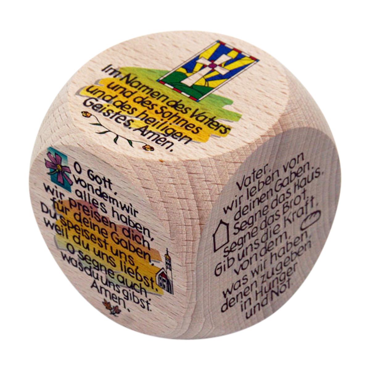 Gebetswürfel Tischgebete 6cm, Made in Germany Gebetswürfel Kindergebete mit farbigem Druck für Kinder und Erwachsene aus Holz- Taufe Kommunion aus unbehandeltem Buchenholz mit individueller schöner Holzmaserung 60 x 60 x 60 mm, Gewicht ca. 150 g 6 Tischgebete farbig Gebete: 1. Vater im Himmel, segne Speise und Trank, die Frucht der Erde und der menschlichen Arbeit, und laß uns geborgen bleiben in deiner Liebe, durch Christus , unsern Herrn. 2. Im Namen des Vaters und des Sohnes und des heiligen Geistes. Amen. 3. Alle Guten Gaben kommen, Herr, von dir. Was wir sind und haben, dafür danken wir. 4. Herr, segne uns diese Gaben, die wir von deiner Güte nun empfangen durch Christus unsern Herrn. 5. O Gott, von dem wir alles haben, wir preisen dich für Deine Gaben. Du speisest uns, weil Du uns liebst; o segne auch, was Du uns gibst.Amen. 6. Vater, wir leben von Deinen Gaben. Segne das Haus und segne das Brot. Gib uns die Kraft, von dem, was wir haben, andern zu geben in Hunger und Not. |