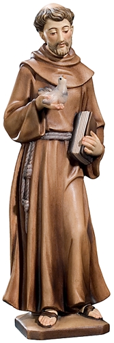 Heiliger Franziskus in Ahornholz geschnitzt - 20cm hoch, color Heiligen Figuren aus Südtirol - das Schmuckstück Ihrer Wohnung. Neben den vielen Holzspielwaren vom Holzlädle, finden Sie bei uns, auch das besondere Geschenk. Der aus massivem Ahornholz geschnitzte heilige Franziskus ist 20cm hoch und farbig bemalt. Die sehr schön gearbeitete Figur: Heiliger Franziskus, findet sicher einen schönen Platz in Ihrer Wohnung und ist ein Geschenk für den besonderen Anlass. Durch die Struktur und Farbe des Holzes und durch die individuelle Bemalung von Hand, unterscheiden sich alle Schnitzfiguren voneinander, somit ist jede einzelne Schnitzfigur als Einzelstück an zu sehen. Ihre persönliche Schnitzerei, gibt es deshalb auch kein zweites Mal in genau der gleichen Ausführung. Holz reagiert auf Temperaturen und Feuchtigkeit, deshalb sollte ein gleichmäßiges Raumklima bewahrt werden. Durch natürliche Lichteinwirkungen kann das Holz im Laufe der Zeit seine Farbe verändern. Wenn Sie andere Figuren suchen, fragen Sie einfach bei uns an, wir können vieles für Sie besorgen. Der heilige Franziskus ist in den Größen: 12cm, 15cm, 20cm, 25cm, 30cm, 36cm, 40cm, 60cm, 80cm, 100cm, 120cm, 150cm, und den Ausführungen: naturbelassen, 3 farbig lasiert und farbig bemalt, erhältlich. Alle Modelle sind urheberrechtlich geschützt. |