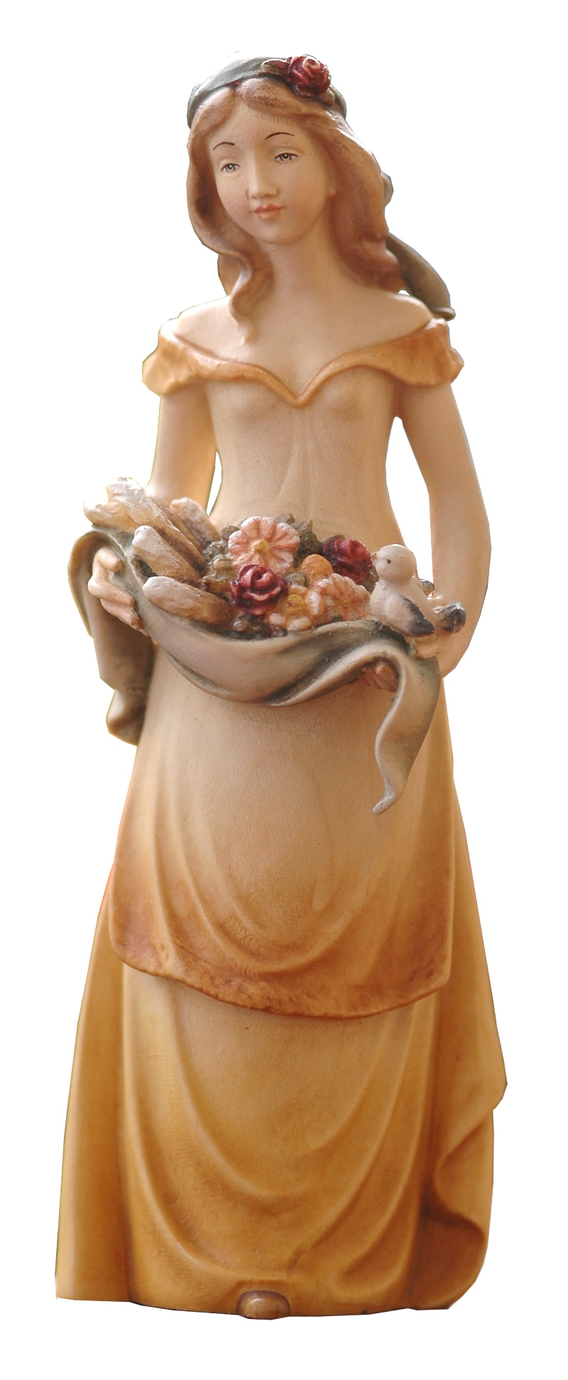 Sommer - 4 Jahreszeiten Mädchen, 20cm hoch, bemalt Schnitzfiguren aus Südtirol - das Schmuckstück Ihrer Wohnung. Neben den vielen Holzspielwaren vom Holzlädle, finden Sie bei uns, auch das besondere Geschenk. Das aus Ahornholz geschnitzte 4 Jahreszeiten Mädchen - Sommer ist 20cm groß. Die sehr schön gearbeitete Figur: 4 Jahreszeiten Mädchen - Sommer ist farbig bemalt und ein Geschenk der Extraklasse. Durch die Struktur und Farbe des Holzes und durch die individuelle Bemalung von Hand, unterscheiden sich alle Schnitzfiguren voneinander, somit ist jede einzelne Schnitzfigur als Einzelstück an zu sehen. Ihre persönliche Schnitzerei, gibt es deshalb auch kein zweites Mal in genau der gleichen Ausführung. Holz reagiert auf Temperaturen und Feuchtigkeit, deshalb sollte ein gleichmäßiges Raumklima bewahrt werden. Durch natürliche Lichteinwirkungen kann das Holz im Laufe der Zeit seine Farbe verändern. Wenn Sie andere Figuren oder Reliefs suchen, fragen Sie einfach bei uns an, wir können vieles für Sie besorgen. Das 4 Jahreszeiten Mädchen - Sommer ist in den Ausführungen: naturbelassen, mit Goldrand und farbig bemalt, sowie in den Größen: 15cm, 20cm + 30cm erhältlich. Alle Modelle sind urheberrechtlich geschützt. |