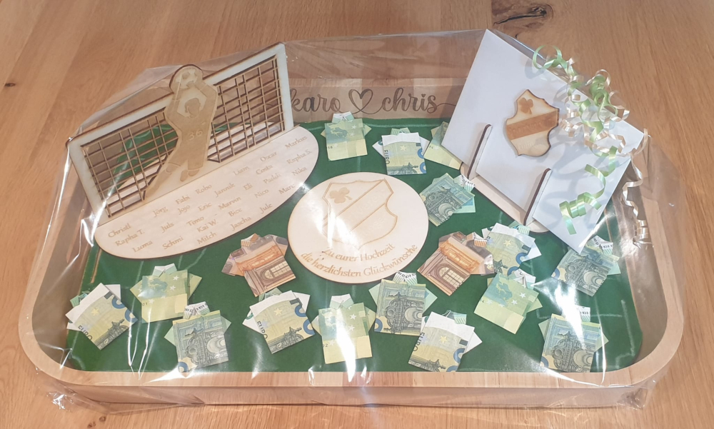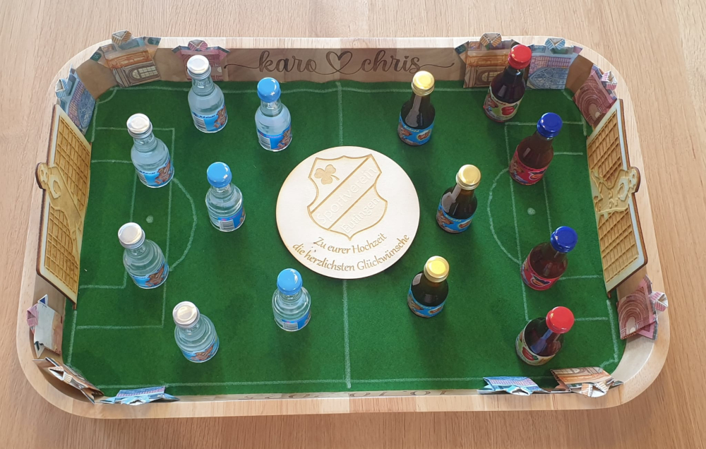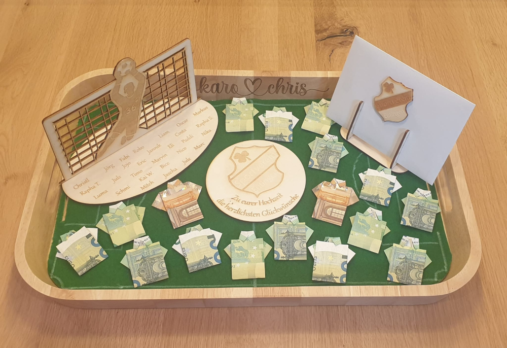 Tablett aus Gummibaumholz - durch Hohen Rand sicher zu greifen Dies sollten Sie beachten: Holz gehört generell nie in die Spülmaschine - keinen großen Temperatur- und Feuchtigkeitsschwankungen aussetzen - mit einem feuchten Tuch reinigen, danach trocken abreiben und zum austrocknen aufstellen, Tipps beachten, haben Sie lange Freude Das Tablett kann auch gerne personalisiert werden, schreiben Sie uns gerne Ihre Wünsche. Auch als Stadion lässt sich das Tablet schön dekorieren, der Schriftzug als Bandenwerbung, Zuschauer als Gelscheine usw. - das perfekte Hochzeits- oder Geburtstagsgeschenk für einen Fußballer. Tablett aus Gummibaumholz |