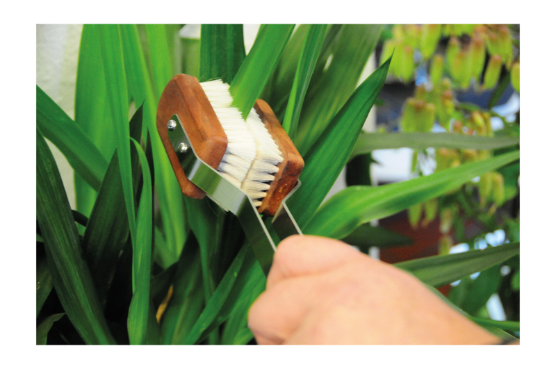 Blätterbürste für Zimmerpflanzen, 35cm Gerade auf großblättrigen Zimmerpflanzen, wie z.B. Geigenfeige, Fensterblatt oder Monstera, Yucca und Palmlilie setzt sich oft Staub nieder und lässt die Blätter stumpf und farblos aussehen. Die beiden mit Ziegenhaar besetzten Bürstenkörper drücken Sie mit der Edelstahlzange zusammen und fahren so über die Blätter. Solche Bürsten wurden schon in den Orangerien von Kaiser Wilhelm verwendet. Wir haben das Modell nach alten Vorlagen neu entwickelt. geöltes Birnbaumholz Ziegenhaar Größe: 35 cm. |