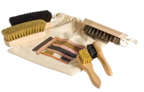 Reiseschuhputz-Set Reiseschuhputz-Set fünf kleine Schuhbürsten im bedruckten Baumwoll-Beutel In diesem hübschen Reiseschuhputz-Set finden Sie alles, was Sie brauchen, um Ihren Schuhen auch unterwegs neuen Glanz zu verleihen: 1 x Reiseschuhputzbeutel 1 x Schuhtuch, 40 x 40 cm 1 x Auftragbürste, helle Borste, 12 cm 1 x Auftragbürste, schwarze Borste, 12 cm 1 x Glanzbürste, helles Rosshaar, 12 cm 1 x Glanzbürste, schwarzes Rosshaar, 12 cm 1 x Schmutzbürste, Kokos/Fibre, 14 cm |