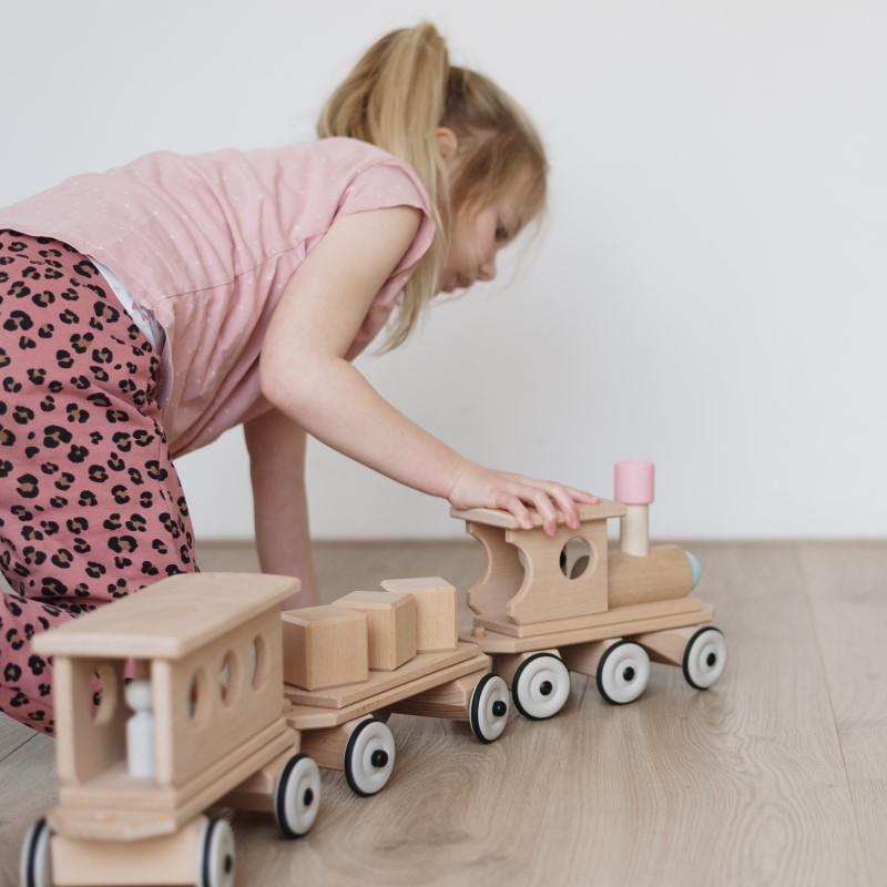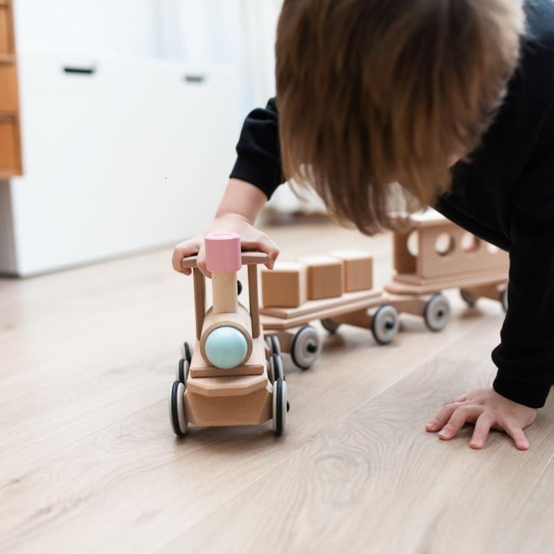 Holz Zug - Lokomotive farbig von Dynamiko Der neue Holz Zug von Dynamiko vereint Innovation und Spielspaß. Dieser Zug hat eine einzigartige Allrad-Lenkung, welche ermöglicht die Anhänger und Waggons spurtreu zu ziehen. Egal wieviele Anhänger eine Lokomotive hinter sich her zieht, alle folgen dem Zugfahrzeug spurtreu wie auf Schienen. Gelenkt werden unsere Lokomotiven über den drehbaren Schornstein. Die Bauteile für den Zug sind handgefertigt und ausschließlich in Deutschland und Österreich produziert. Jedes Holzfahrzeug ist ein Naturprodukt, dessen Oberflächenbeschaffenheit und Struktur einzigartig sind: Die unterschiedlichen Holzmaserungen und farblichen Besonderheiten sind typische Qualitätsmerkmale. Durch sie ist jedes der Dynamiko Holzfahrzeuge ein Unikat. INHALT: lenkbare Lokomotive (bunt) mit einer schwarzen Figur HOCHWERTIG: Made in Germany FAIR: Gefertigt in Zusammenarbeit mit Menschen mit Behinderung INNOVATIV: integrierte Allradlenkung EINZIGARTIG: fahren wie auf Schienen - aber ohne Schienen NACHHALTIG: ausschließlich aus Holz von nachhaltiger Waldbewirtschaftung Achtung! Nicht geeignet für Kinder unter 3 Jahren Größe: ca. 25x13x20cm Einsatzbereich: Innenräume Alter: 3-8 Jahre Material: Buchenhartholz Herstellung: Made in Germany |