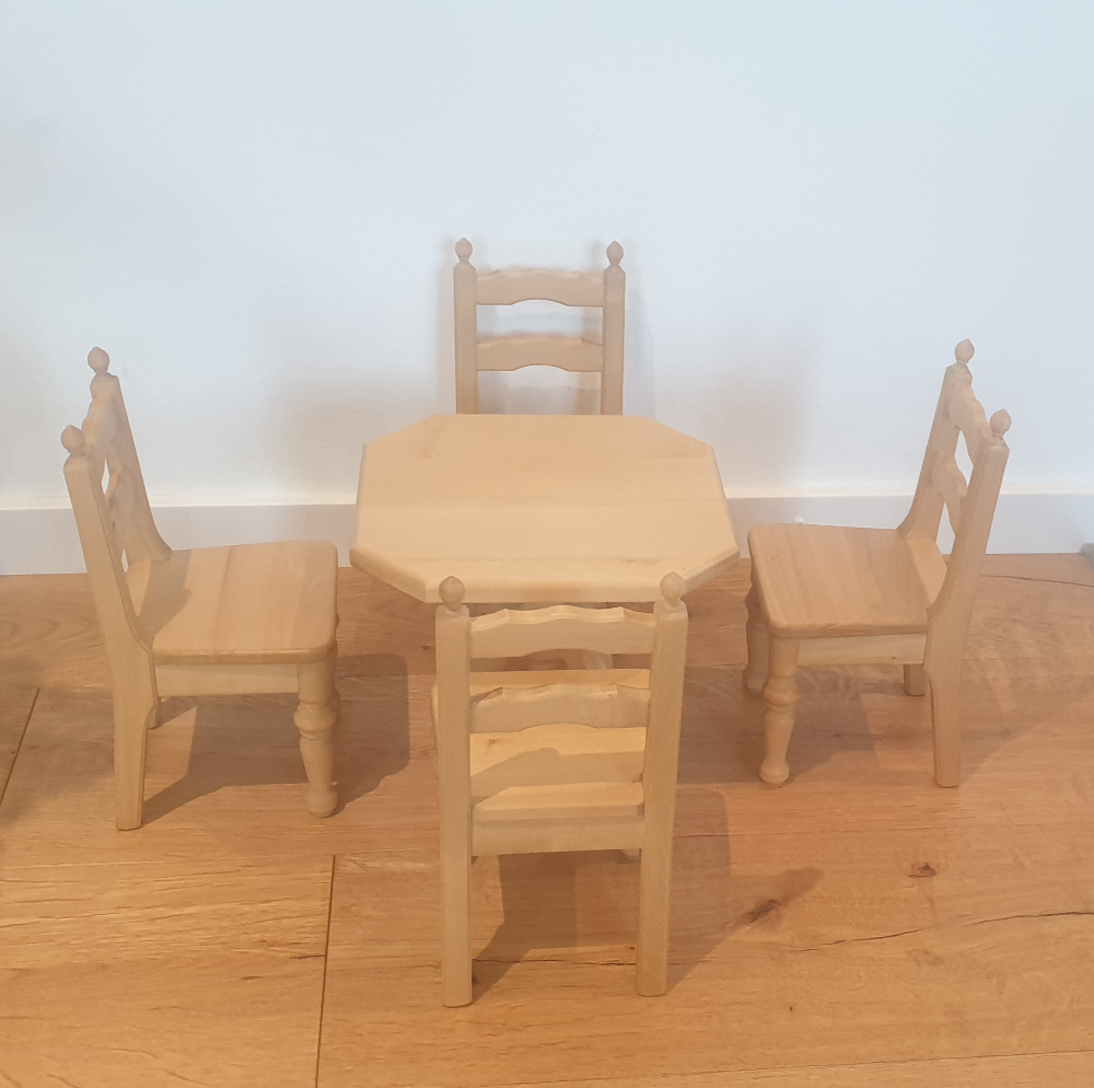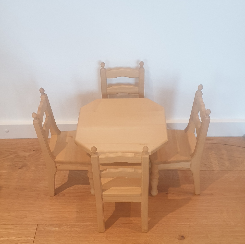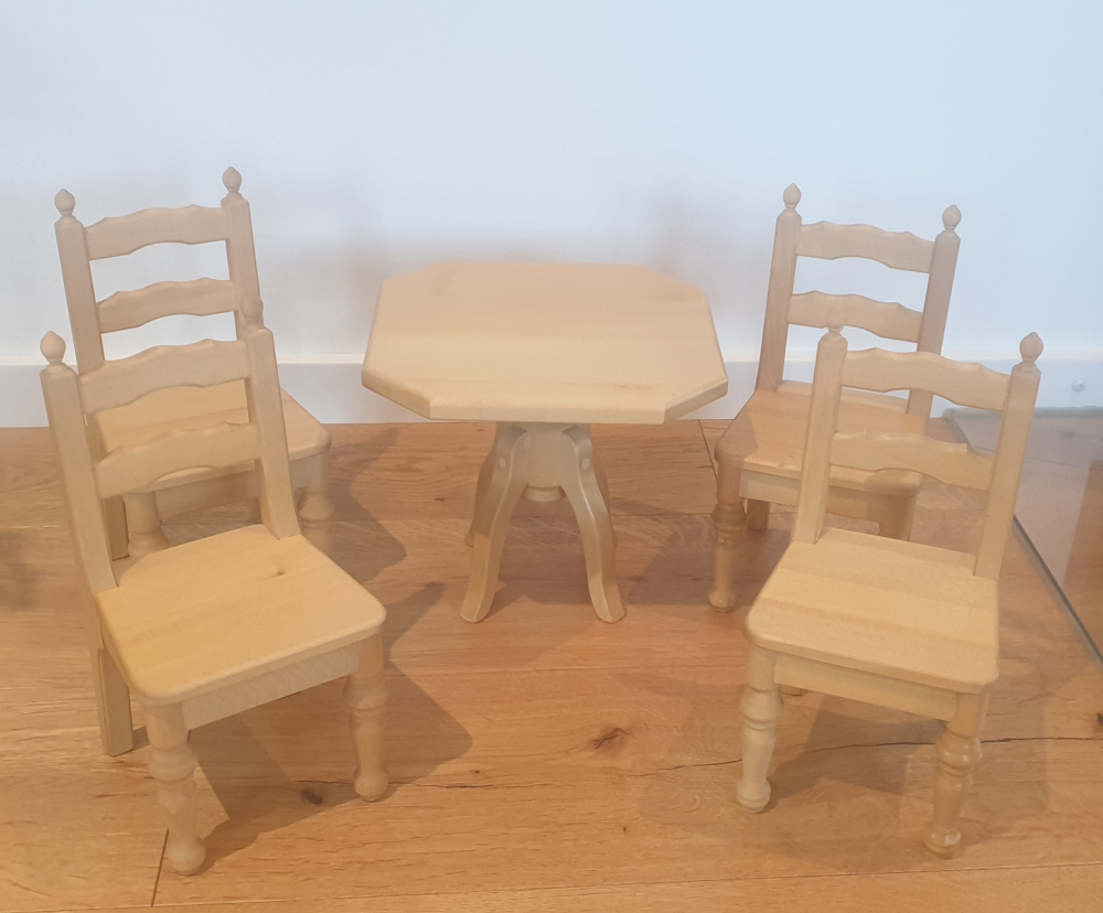 Landhaus Puppenmöbel Tisch und 4 Stühle