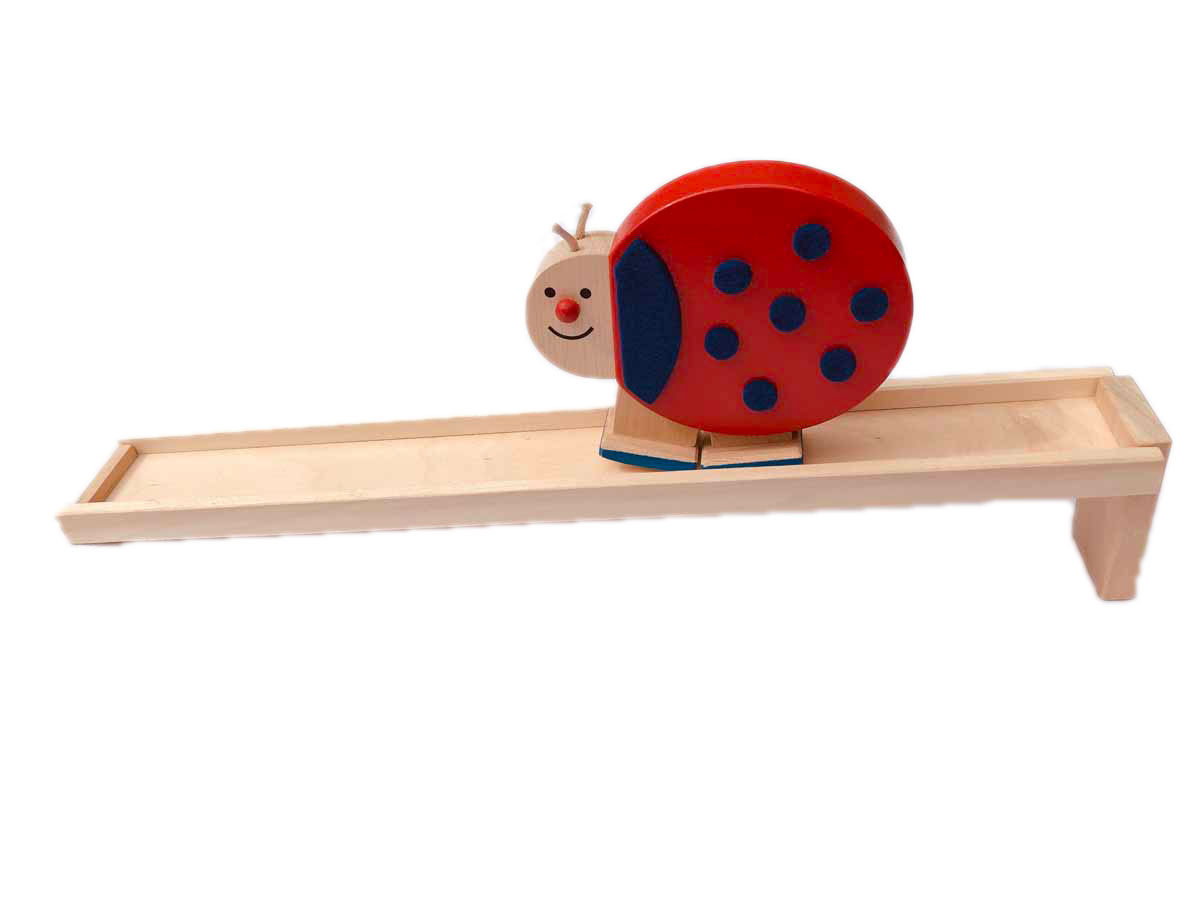 Lustiges Lauftier Wackeltier aus Holz Marienkäfer Schönes, witziges Lauftier aus Holz. Wenn das Tier oben an der Rampe platziert wird und kurz angetippt wird, dann läuft es wackelnd die Rampe hinunter - ein tolles Spielzeug. Länge der Rampe 37 cm Achtung: Für Kinder unter 36 Monaten nicht geeignet. Erstickungsgefahr! |