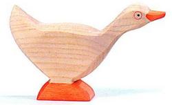 Ostheimer - Familie und Bauernhoftiere - Gans stehend Spielräume für Kinderträume mit den Figuren vom Bauernhof. Spielend, das Leben auf dem Bauernhof erleben - mit der Ostheimer Figurenwelt. Handgestaltetes Holzspielzeug aus Ahorn- und Eschenholz von Ostheimer, weckt und fördert die Kreativkräfte im Kind und regt zum phantasievollen Spielen an. Kinder tauchen mit diesem pädagogisch wertvollen Spielzeug, eines der vielen Holzspielwaren aus dem Holzlädle, in ihre Welten ein und spielen das Leben auf dem Bauernhof nach. Das Design, mit den weichkantigen Schliffen und seiner Farbgebung, versucht das jeweils Typische der Formen und Bewegungen einzufangen, und ermöglicht den Kindern das Erkennen, der es umgebenden Welt. Die transparente Handbemalung der Figuren unterstützt die natürliche Oberflächenstruktur des Holzes, leichte Farbunterschiede sind nicht als Fehler anzusehen, sondern sind ein Merkmal für handgestaltetes Spielzeug. Die Figuren sind mit für Kinder unbedenklichen Farben und Ölen behandelt. Nicht geeignet für Kinder unter 3 Jahren, trotz guter Qualität und gewissenhafter Verarbeitung des Holzspielzeugs, kann es zu Absplitterungen kommen, die für Kinder unter 3 Jahren zur Verschluckgefahr werden können. Wir haben nur eine Auswahl an Ostheimer Figuren im Shop, wenn Sie andere Figuren wollen, fragen Sie bitte nach. Ostheimer Figurenwelt - Familie und Bauernhoftiere - Gans stehend