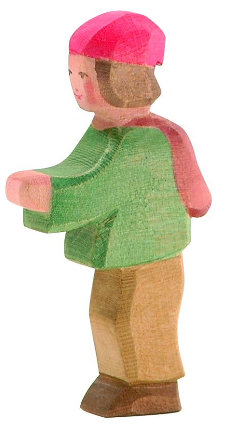 Ostheimer - Hirtenbub - Familie und Bauernhoftiere Ostheimer Familie - Hirtenbub - handgestaltetes Holzspielzeug aus Ahornholz Spielräume für Kinderträume - mit den Ostheimer Figuren phantasievoll spielen Spielend die Geschehnisse auf dem Bauernhof und im täglichen Leben kreativ und phantasievoll erleben - mit den Ostheimer Figuren und Bauerhoftieren, regt Kinder zum phantasievollen spielen an, weckt und fördert die Kreativkräfte im Kind. Kinder tauchen mit diesem pädagogisch wertvollen Spielzeug - in ihre Welten ein und spielen das Leben nach Das Design, mit den weichkantigen Schliffen und seiner Farbgebung, versucht das jeweils typische der Figuren und Bewegungen einzufangen, und ermöglicht den Kindern das Erkennen, der es umgebenden Welt. Die Ostheimer typische, transparente Handbemalung der Figuren unterstützt die natürliche Oberflächenstruktur des Holzes, leichte Farbunterschiede sind nicht als Fehler anzusehen, sondern sind ein Merkmal für handgestaltetes Spielzeug. Die Figuren sind mit für Kinder unbedenklichen Farben und Ölen behandelt Ostheimer Familie - Hirtenbub - hergestellt in Deutschland