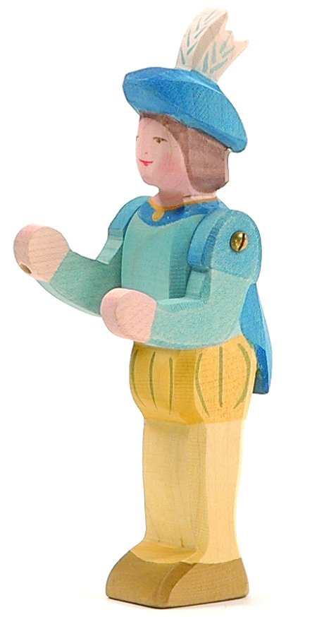 Ostheimer Figurenwelt - Märchenfiguren und Rittertum - Kronprinz ohne Schwert Spielräume für Kinderträume mit den Figuren von der Märchenwelt und vom Rittertum. Spielend, in die Märchenwelt und das Rittertum eintauchen - mit der Ostheimer Figurenwelt. Handgestaltetes Holzspielzeug aus Ahorn- und Eschenholz von Ostheimer, weckt und fördert die Kreativkräfte im Kind und regt zum phantasievollen Spielen an. Kinder tauchen mit diesem pädagogisch wertvollen Spielzeug, eines der vielen Holzspielwaren aus dem Holzlädle, in ihre Welten ein und spielen die Märchen und Rittergeschichten nach. Das Design, mit den weichkantigen Schliffen und seiner Farbgebung, versucht das jeweils Typische der Formen und Bewegungen einzufangen, und ermöglicht den Kindern das Erkennen, der es umgebenden Welt. Die transparente Handbemalung der Figuren unterstützt die natürliche Oberflächenstruktur des Holzes, leichte Farbunterschiede sind nicht als Fehler anzusehen, sondern sind ein Merkmal für handgestaltetes Spielzeug. Die Figuren sind mit für Kinder unbedenklichen Farben und Ölen behandelt. Nicht geeignet für Kinder unter 3 Jahren, trotz guter Qualität und gewissenhafter Verarbeitung des Holzspielzeugs, kann es zu Absplitterungen kommen, die für Kinder unter 3 Jahren zur Verschluckgefahr werden können. Wir haben nur eine Auswahl an Ostheimer Figuren im Shop, wenn Sie andere Figuren wollen, fragen Sie bitte nach. Ostheimer Figurenwelt - Märchenfiguren und Rittertum - Kronprinz, passend für die Ostheimer-Burg, Ostheimer Kreativburg, Kinderkram Burg und Drewart Burg