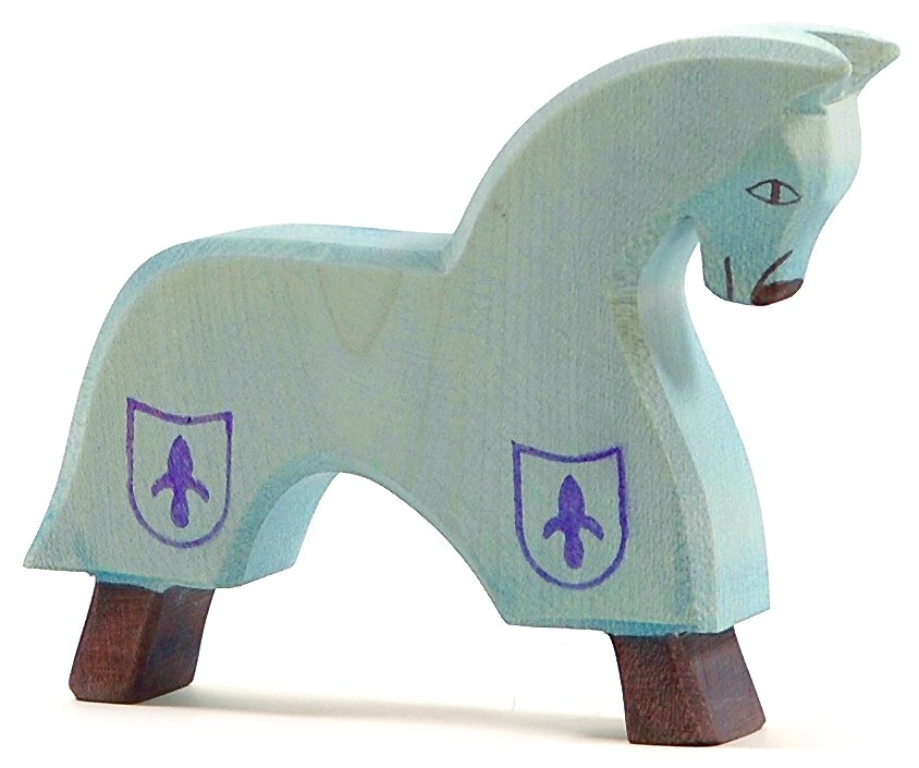 Ostheimer Figurenwelt - Märchenfiguren und Rittertum - Turnierpferd blau Spielräume für Kinderträume mit den Figuren von der Märchenwelt und vom Rittertum. Spielend, in die Märchenwelt und das Rittertum eintauchen - mit der Ostheimer Figurenwelt. Handgestaltetes Holzspielzeug aus Ahorn- und Eschenholz von Ostheimer, weckt und fördert die Kreativkräfte im Kind und regt zum phantasievollen Spielen an. Kinder tauchen mit diesem pädagogisch wertvollen Spielzeug, eines der vielen Holzspielwaren aus dem Holzlädle, in ihre Welten ein und spielen die Märchen und Rittergeschichten nach. Das Design, mit den weichkantigen Schliffen und seiner Farbgebung, versucht das jeweils Typische der Formen und Bewegungen einzufangen, und ermöglicht den Kindern das Erkennen, der es umgebenden Welt. Die transparente Handbemalung der Figuren unterstützt die natürliche Oberflächenstruktur des Holzes, leichte Farbunterschiede sind nicht als Fehler anzusehen, sondern sind ein Merkmal für handgestaltetes Spielzeug. Die Figuren sind mit für Kinder unbedenklichen Farben und Ölen behandelt. Nicht geeignet für Kinder unter 3 Jahren, trotz guter Qualität und gewissenhafter Verarbeitung des Holzspielzeugs, kann es zu Absplitterungen kommen, die für Kinder unter 3 Jahren zur Verschluckgefahr werden können. Wir haben nur eine Auswahl an Ostheimer Figuren im Shop, wenn Sie andere Figuren wollen, fragen Sie bitte nach. Ostheimer Figurenwelt - Märchenfiguren und Rittertum - Turnierpferd blau, passend für die Ostheimer-Burg, Ostheimer Kreativburg, Kinderkram Burg und Drewart Burg