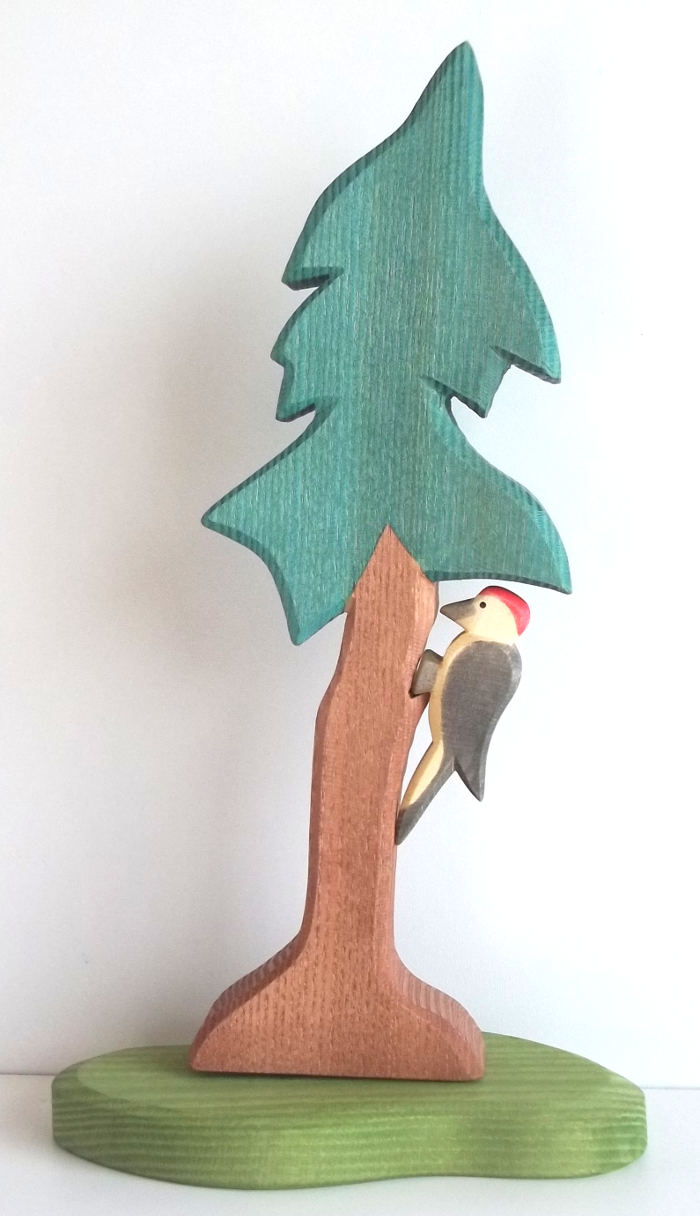 Ostheimer Figurenwelt - Tiere aus Wald und Flur - Specht auf Tanne Spielend, die Geheimnisse in Wald und Flur erforschen - mit der Ostheimer Figurenwelt. Handgestaltetes Holzspielzeug aus Ahorn- und Eschenholz von Ostheimer, weckt und fördert die Kreativkräfte im Kind und regt zum phantasievollen Spielen an. Kinder tauchen mit diesem pädagogisch wertvollen Spielzeug, eines der vielen Holzspielwaren aus dem Holzlädle, in ihre Welten ein und spielen das Leben im Wald und in der Natur nach. Das Design, mit den weichkantigen Schliffen und seiner Farbgebung, versucht das jeweils Typische der Formen und Bewegungen einzufangen, und ermöglicht den Kindern das Erkennen, der es umgebenden Welt. Die transparente Handbemalung der Figuren unterstützt die natürliche Oberflächenstruktur des Holzes, leichte Farbunterschiede sind nicht als Fehler anzusehen, sondern sind ein Merkmal für handgestaltetes Spielzeug. Die Figuren sind mit für Kinder unbedenklichen Farben und Ölen behandelt. Nicht geeignet für Kinder unter 3 Jahren, trotz guter Qualität und gewissenhafter Verarbeitung des Holzspielzeugs, kann es zu Absplitterungen kommen, die für Kinder unter 3 Jahren zur Verschluckgefahr werden können. Wir haben nur eine Auswahl an Ostheimer Figuren im Shop, wenn Sie andere Figuren wollen, fragen Sie bitte nach. Ostheimer Figurenwelt - Tiere aus Wald und Flur - Specht auf Tanne