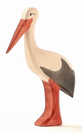 Ostheimer Figurenwelt - Tiere aus Wald und Flur - Storch Spielend, die Geheimnisse in Wald und Flur erforschen - mit der Ostheimer Figurenwelt. Handgestaltetes Holzspielzeug aus Ahorn- und Eschenholz von Ostheimer, weckt und fördert die Kreativkräfte im Kind und regt zum phantasievollen Spielen an. Kinder tauchen mit diesem pädagogisch wertvollen Spielzeug, eines der vielen Holzspielwaren aus dem Holzlädle, in ihre Welten ein und spielen das Leben im Wald und in der Natur nach. Das Design, mit den weichkantigen Schliffen und seiner Farbgebung, versucht das jeweils Typische der Formen und Bewegungen einzufangen, und ermöglicht den Kindern das Erkennen, der es umgebenden Welt. Die transparente Handbemalung der Figuren unterstützt die natürliche Oberflächenstruktur des Holzes, leichte Farbunterschiede sind nicht als Fehler anzusehen, sondern sind ein Merkmal für handgestaltetes Spielzeug. Die Figuren sind mit für Kinder unbedenklichen Farben und Ölen behandelt. Nicht geeignet für Kinder unter 3 Jahren, trotz guter Qualität und gewissenhafter Verarbeitung des Holzspielzeugs, kann es zu Absplitterungen kommen, die für Kinder unter 3 Jahren zur Verschluckgefahr werden können. Wir haben nur eine Auswahl an Ostheimer Figuren im Shop, wenn Sie andere Figuren wollen, fragen Sie bitte nach. Ostheimer Figurenwelt - Tiere aus Wald und Flur - Storch