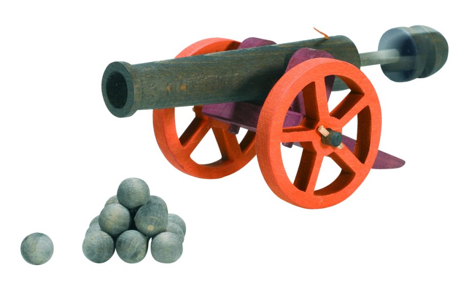 Ritterburg Zubehör - Kanone groß BxTxH 22x10x8cm, mit 10 Kanonenkugeln Die große Kanone ist die Ergänzung zur Ritterburg. Mit diesem Zubehörteil können Sie Ihre individuelle Ritterburg zusammenstellen. Die Zubehörteile für die Ritterburg sind natürlich, wie alles Spielzeug aus Holz vom Holzlädle, mit ungiftigen Farben und Lacken bemalt und lackiert. Die große Kanone, wie alles andere Holzspielzeug vom Holzlädle, ist aus dem Naturwerkstoff Holz hergestellt. Leichte Farbunterschiede sind nicht als Fehler anzusehen, sondern sind ein Merkmal des lebendigen Werkstoffes Holz. Durch die Struktur und Farbe des Holzes unterscheidet sich jede Figur und jeder Artikel vom anderen. Trotz guter Qualität des Materials und gewissenhafter Verarbeitung der Holzspielwaren, kann es bei Holzprodukten zu Absplitterungen kommen, die für Kinder unter 3 Jahren zur Verschluckgefahr werden können. Kanone groß |