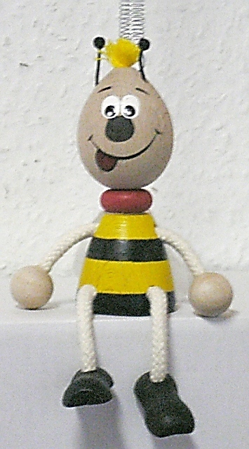 Biene W - die witzige Schwingfigur zum Entspannen, zum Träumen, zum Staunen und zum Liebhaben ca. 12cm Schöne, dekorative und witzige Schwingfiguren zum Entspannen, zum Träumen, zum Staunen und zum Liebhaben - neben den vielen Holzspielwaren vom Holzlädle, finden Sie bei uns, auch das kleine Mitbringgeschenk. Wir führen lustige Schwingfiguren aus Holz - für Kinder und Erwachsene. Diese witzigen Schwingfiguren sind bunt bemalt, toll gestylt und sehr dekorativ. Durch die robusten Federn schwingen sie sehr lange nach. Die Schwingfiguren dienen zum entspannen, träumen, staunen und liebhaben. Sollte die Feder einmal lahm werden, können Sie auch die Ersatzfedern für diese Schwingfiguren bei uns bekommen. Unter den vielen Figuren - Motiven findet sich bestimmt auch die Lieblingsfigur für Sie und Ihr Kind. Trotz guter Qualität des Materials und gewissenhafter Verarbeitung der Holzspielwaren, kann es bei Holzprodukten zu Absplitterungen kommen, die für Kinder unter 3 Jahren zur Verschluckgefahr werden können. Wir haben im Shop nur eine Auswahl an Schwingfiguren, andere Figuren - Motive bitte anfragen. Schwingfigur - Biene Willi ca. 12cm |