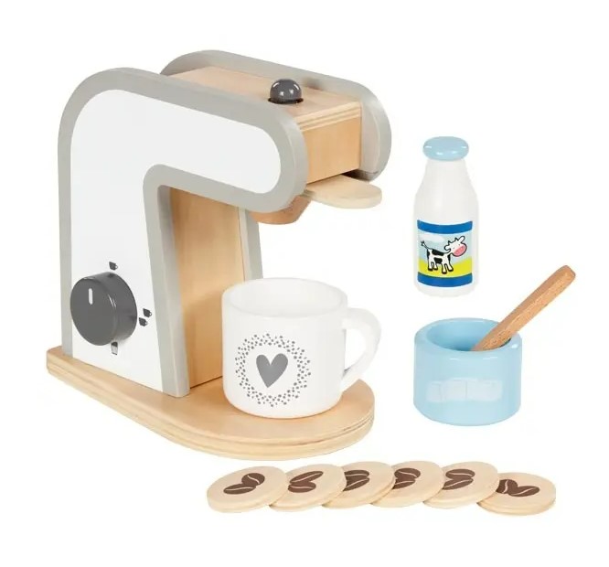 Kaffeemaschine von Goki, ab 3 Jahren Spielend Haushalten, Kochen, Waschen, Backen - mit unserem Kinderküchen-Zubehör von Glückskäfer. Neben den vielen Holzspielwaren und Geschenken aus Holz, finden Sie im Holzlädle, das umfassende Sortiment fürs häusliche Rollenspiel von Glückskäfer. Funktionstaugliche, robuste Geräte und Accessoires zum echten mitarbeiten, wo leckeres Essen zubereitet wird, ist für Kinder ein besonderer Genuss. Modernes Design, kindgerechte Handhabung und viel Zubehör bieten den kleinen Küchenchefs alles, um ihren Gästen mittels dieser Kaffeemaschine den vollen Kaffeegenuss anbieten zu können.Artikelnummer: 51506Altersempfehlung: 3+Material: HolzAnzahl-Teile: 13Artikelmaß: 17,5 x 10,5 x 16,5 cm |