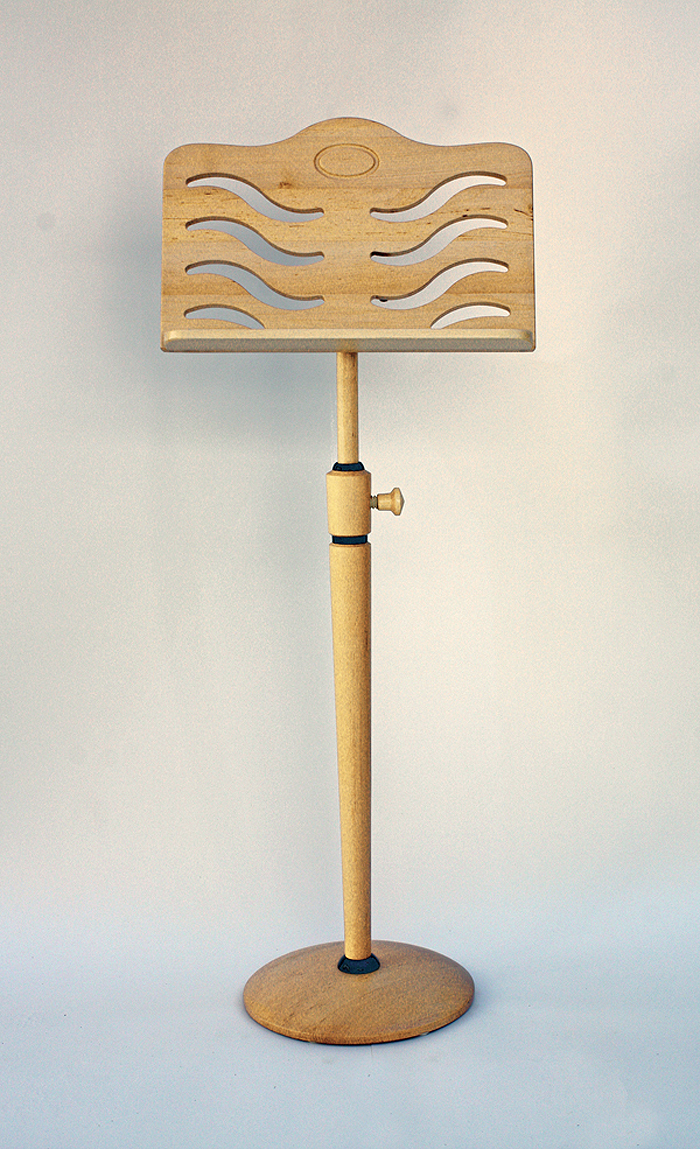 Notenständer - Verdi-Melodie stufenlos höhenverstellbar von 75-130cm, Notenablage 48x30cm, Neigung mittels Klemmschraube stufenlos verstellbar, inclusive 2 magnetischen Blatthalterknöpfen Notenständer aus Holz – modern gestaltet sind ein Schmuckstück für Ihr Zuhause. Neben den vielen Holzspielwaren, finden Sie im Holzlaedle auch gedrechselte Notenständer aus edlen, heimischen Hölzern. Notenständer - aus heimischen Hölzern in natur lackiert, gebeizt oder deckend lackiert erhältlich, sie sind in der Höhe stufenlos verstellbar von 75cm - 130cm, die Notenablage ist 48cm breit und 30cm hoch, die Neigung der Notenablage ist mittels Klemmschraube ebenfalls stufenlos verstellbar Notenständer - hergestellt in Deutschland durch Zubehörteile wie: Doppelpult, oder der seitlich ausziehbaren Notenablage, und verschiedenen Oberteilen gibt es vielfältige Variationsmöglichkeiten bei diesem Notenständer. Notenständer - Verdi-Melodie ist in den Ausführungen: Erlenholz natur lackiert, Eschenholz natur lackiert, Ahornholz natur lackiert, Buchenholz natur lackiert, Kirschbaumholz natur lackiert, Fichtenholz natur lackiert, Eichenholz natur lackiert, Nussbaumholz natur lackiert, Mahagoniholz natur lackiert, Birnbaumholz natur lackiert, Buchenholz mahagonifarbig gebeizt und lackiert, Buchenholz nussbaumfarbig gebeizt und lackiert, Eschenholz rustikal gebeizt und lackiert, Eichenholz rustikal gebeizt und lackiert, sowie in weiss oder schwarz offenporig lackiert lieferbar. Anhand der Holzarten-Farbmuster-Karten können Sie die Holzart- bzw. Farbauswahl treffen. |