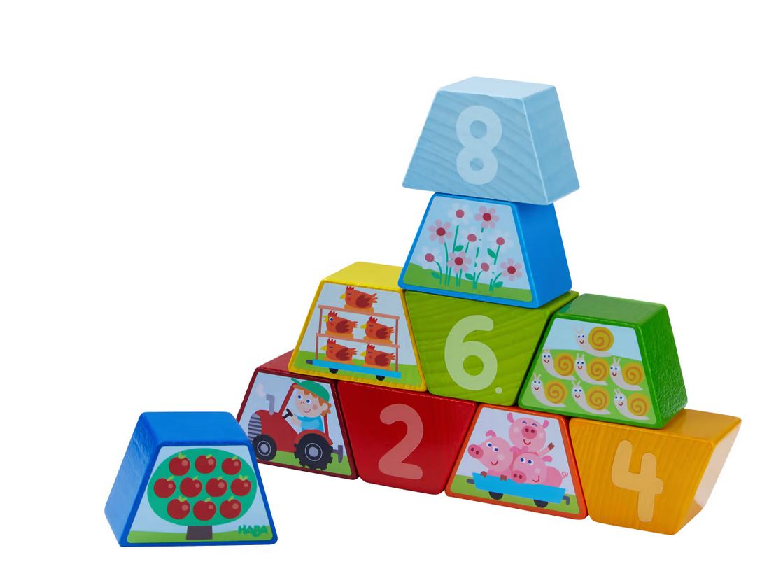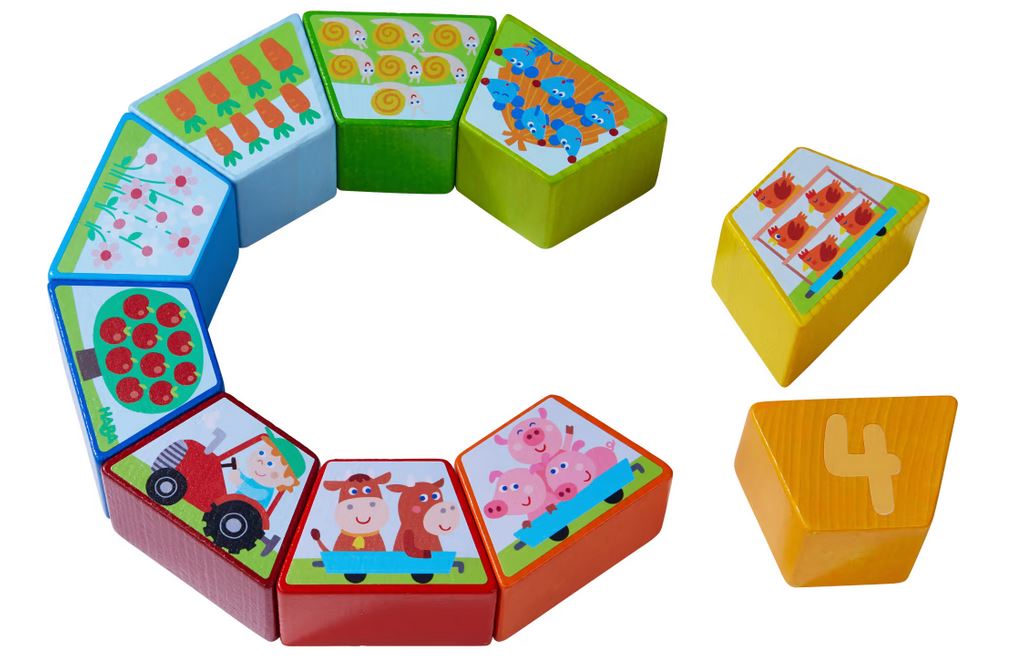 Legespiel Zahlen-Bauernhof, ab 2 Jahren Spielen macht Riesenspass - ob Bilderwürfel, Puzzle, Legespiele, Memospiele, Lernspiele, Motorikspiele, Mitbringspiele oder Familienspiele, im Holzlädle, finden Sie das richtige Spiel. Wir führen Spiele von Selecta, Haba, Erzi und anderen Herstellern, dies sind starke Spiele für Groß und Klein. Los geht die lustige Zählerei: Wie viele Mäuse verstecken sich im Heu? Wie viele Äpfel wachsen am Baum? Das fröhlich-bunte Legespiel Zahlen-Bauernhof von HABA lädt Kinder ab 2 Jahren zum spielerischen Kennenlernen von Zahlen und Mengen ein. Auf insgesamt 10 Steinen aus Holz sind niedliche Bauernhof-Motive abgebildet. Jeder Stein zeigt auf der Vorderseite das Motiv in einer bestimmten Menge, die passende Zahl finden Kinder auf der Rückseite. So können Kinder gleich kontrollieren, ob sie richtig gezählt haben. Ganz nebenbei schult das HABA-Legespiel Zahlen-Bauernhof auch das Erkennen und Benennen von Farben, Tieren und Gegenständen. Inhalt: 10 Steine. Höhe: 4 cm Breite: 4 cm Länge: 6 cm Alter von: 2 Jahre Material: Buche