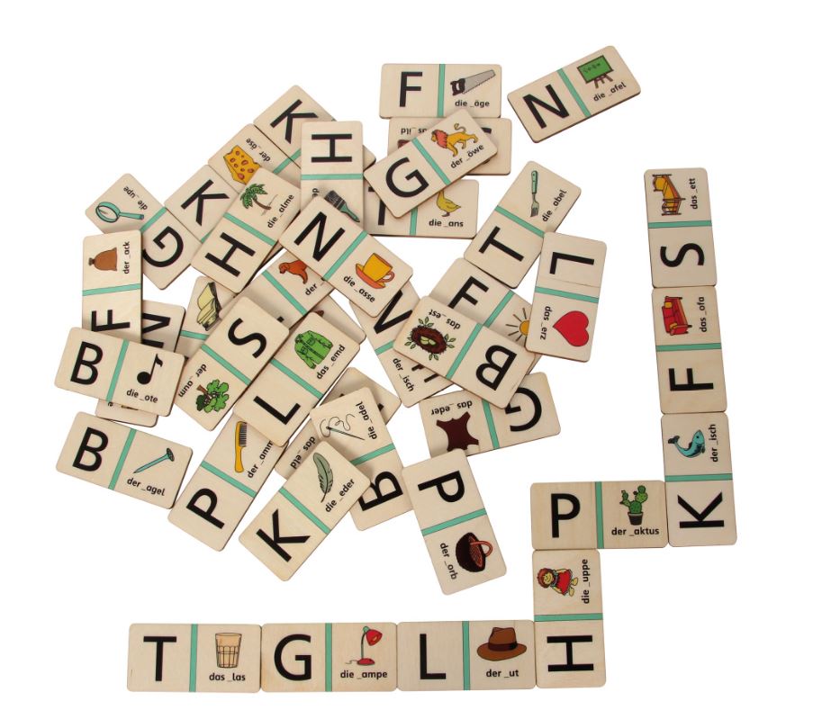 Lesedomino - Lernspiel, ab 5 Jahren, 26x26x5 Spielen macht Riesenspass - ob Bilderwürfel, Puzzle, Legespiele, Memospiele, Lernspiele, Motorikspiele, Mitbringspiele oder Familienspiele, im Holzlädle, finden das richtige Spiel. Wir führen Spiele von Selecta, Haba, Erzi und anderen Herstellern, dies sind starke Spiele für Groß und Klein. Spielerisch macht lernen am meisten Spaß! Lesen lernen und die Buchstaben spielerisch üben mit den 40 Spielsteinen aus Holz. Finde die fehlenden Anfangsbuchstaben und leg sie an! Das Bild gibt eine gute Hilfestellung. Made in Germany.