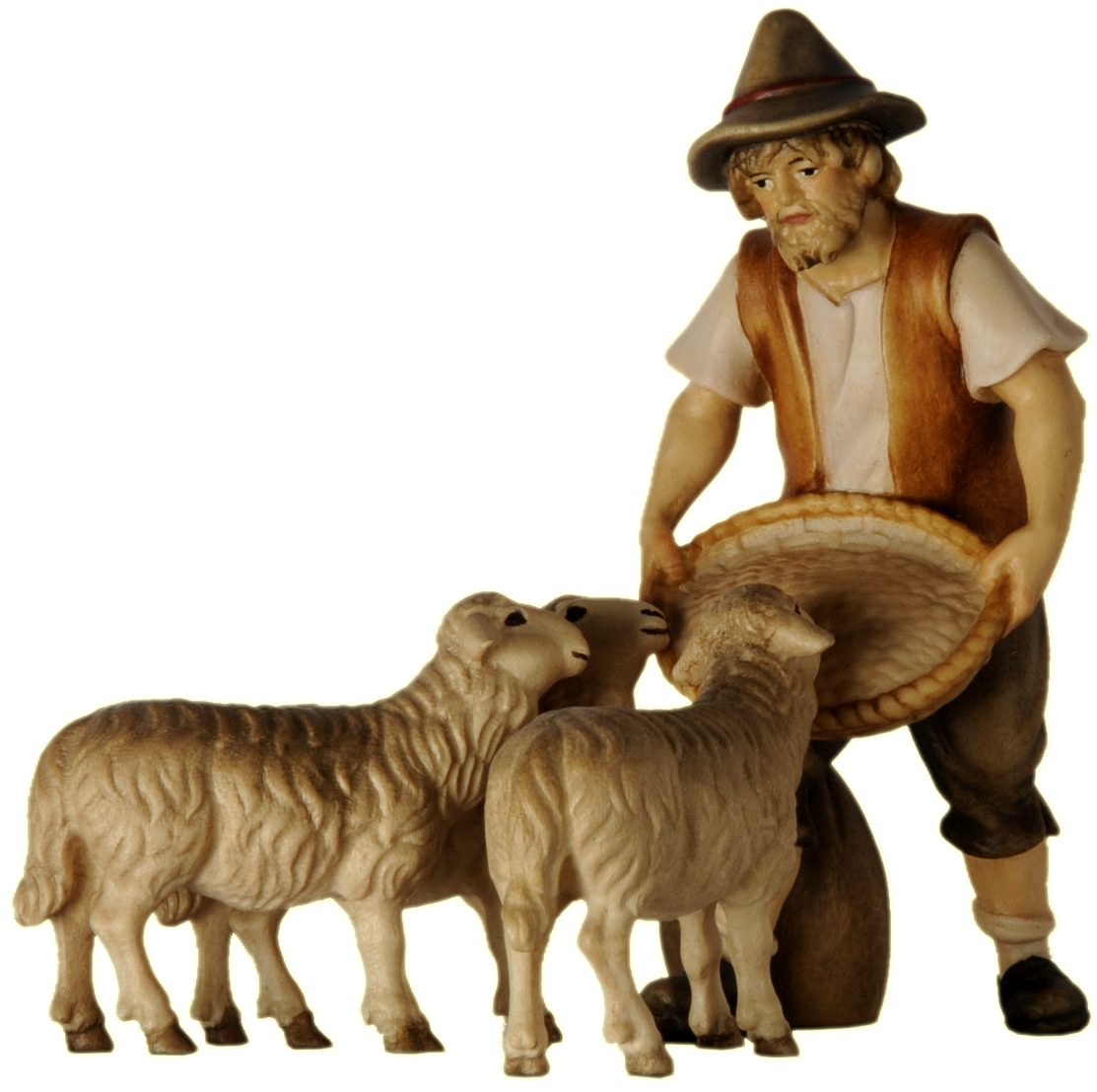 Bethlehem-Krippe - Schaffütterer mit 3 Schafen in color Weihnachten mit der geschnitzten Weihnachtskrippe aus Ahornholz. Neben den vielen Holzspielwaren vom Holzlädle, sind auch sehr schöne geschnitzte Weihnachtskrippen im Holzlädle zu bekommen. Wir führen in Südtirol, aus Ahornholz geschnitzte, sehr schöne Krippenfiguren und Ställe, in unserem breiten Holzlädle - Sortiment. Die Original Bethlehem Krippenfiguren werden in den Größen 8 - 10 - 14 - 22 - 42cm hergestellt. Diese Krippenfiguren sind sehr schön und bis ins Detail liebevoll ausgearbeitet, sie sind in natur, mit Goldstreifen bemalt, in 2 tönig gebeizt oder mit Ölfarben bemalt erhältlich, es gibt ca. 50 verschiedene Figuren. Sie können Ihre Weihnachtskrippe mit der heiligen Familie beginnend, Jahr für Jahr erweitern, bis Sie für Ihre persönlichen Bedürfnisse, die richtige Weihnachtskrippe haben. So werden Sie lange Freude an Ihrer Weihnachtskrippe haben, denn auch die jährliche Vorfreude auf neue Krippenfiguren, stimmt auf ein schönes Weihnachtsfest mit der eigenen Weihnachtskrippe ein. Durch die Struktur und Farbe des Holzes und durch die individuelle Bemalung von Hand der Krippenfiguren, unterscheiden sich alle Krippenfiguren voneinander, somit ist jede einzelne Krippefigur als Einzelstück an zu sehen. Ihre persönliche Weihnachtskrippe, gibt es deshalb auch kein zweites Mal in genau der gleichen Ausführung. Wir haben hier die Figuren in 10cm color abgebildet, wenn Sie eine andere Größe, oder Farbausführung wollen, fragen Sie einfach bei uns nach, wir können sie Ihnen besorgen Original Bethlehem-Krippe - Krippenfigur Schaffütterer mit 3 Schafen in 10cm color Alle Modelle sind urheberrechtlich geschützt. |