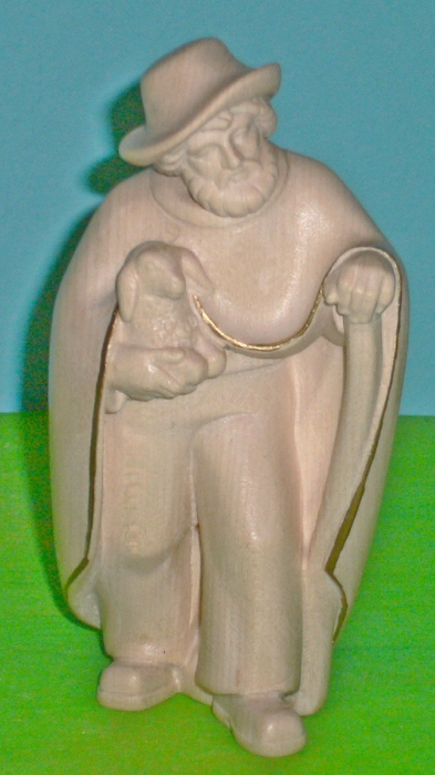 Georg Krippe - Krippenfigur Hirte mit Lamm und Stock in natur mit Goldrand Weihnachten mit der geschnitzten Weihnachtskrippe aus Ahornholz. Neben den vielen Holzspielwaren vom Holzlädle, sind auch sehr schöne geschnitzte Weihnachtskrippen im Holzlädle zu bekommen. Wir führen in Südtirol, aus Ahornholz geschnitzte, sehr schöne Krippenfiguren und Ställe, in unserem breiten Holzlädle - Sortiment. Die modernen Georg Krippenfiguren, ohne Fußsockel, sind in den Größen 9 - 11 - 15 - 19 - 23 - 31 - 46cm, in natur, natur mit Goldrand oder bunt bemalt vom Holzlädle erhältlich. Diese modernen Krippenfiguren in schlichtem Design, sind bis ins Detail liebevoll ausgearbeitet, und mit schönen Farben bemalt. Für die Georg Krippe sind ca. 30 verschiedene Figuren erhältlich. Sie können Ihre Weihnachtskrippe mit der heiligen Familie beginnend, Jahr für Jahr erweitern, bis Sie für Ihre persönlichen Bedürfnisse, die richtige Weihnachtskrippe haben. So werden Sie lange Freude an Ihrer Weihnachtskrippe haben, denn auch die jährliche Vorfreude auf neue Krippenfiguren, stimmt auf ein schönes Weihnachtsfest mit der eigenen Weihnachtskrippe ein. Durch die Struktur und Farbe des Holzes und durch die individuelle Bemalung von Hand der Krippenfiguren, unterscheiden sich alle Krippenfiguren voneinander, somit ist jede einzelne Krippefigur als Einzelstück an zu sehen. Ihre persönliche Weihnachtskrippe, gibt es deshalb auch kein zweites Mal in genau der gleichen Ausführung. Wir haben hier die sehr schönen Figuren in 11cm natur mit Goldrand abgebildet, wenn Sie eine andere Größe, oder Farbausführung wollen, fragen einfach bei uns nach, wir können es Ihnen besorgen. Georg Krippe - Krippenfigur Hirte mit Lamm und Stock in 11cm natur mit Goldrand Alle Modelle sind urheberrechtlich geschützt. |