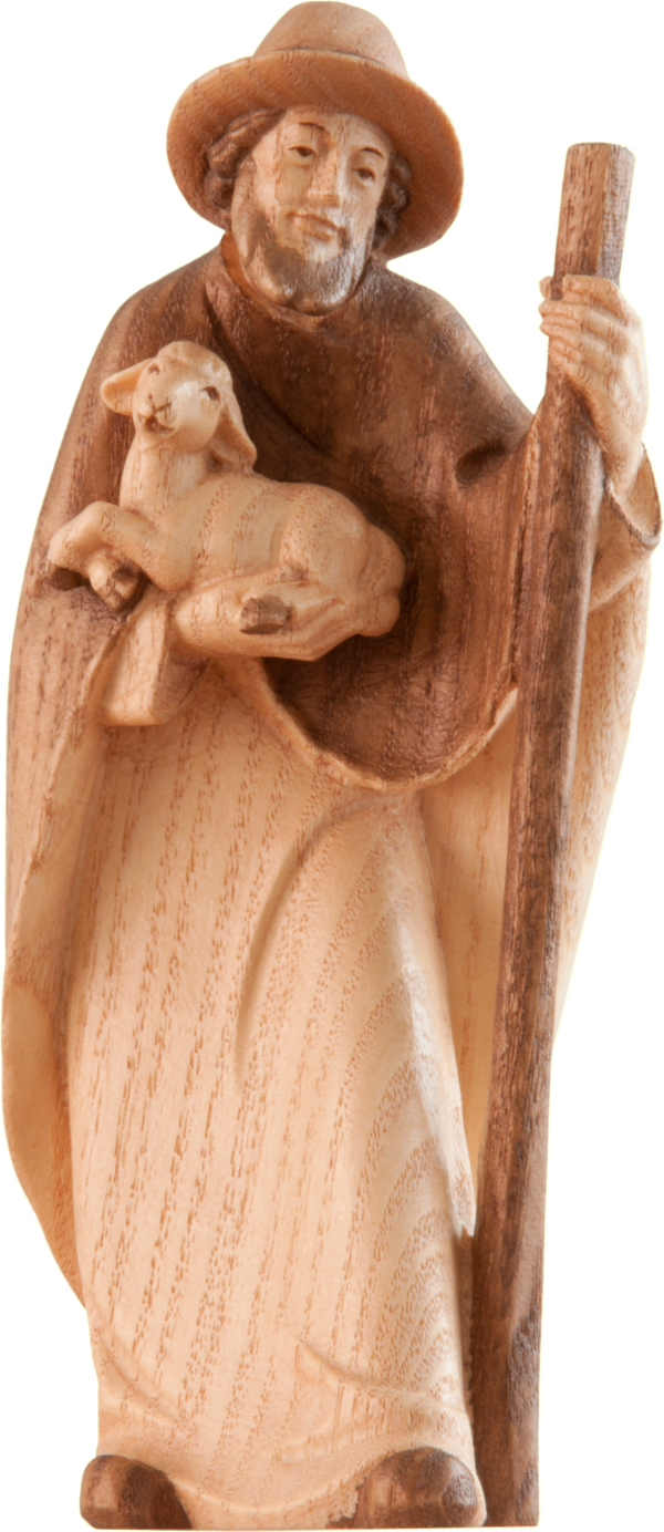 Morgenstern-Krippe - Schäfer mit Lamm und Stock in15cm 2tönig gebeizt mit Goldstreifen Weihnachten mit der geschnitzten Weihnachtskrippe aus Eschenholz. Neben den vielen Holzspielwaren vom Holzlädle, sind auch sehr schöne geschnitzte Weihnachtskrippen im Holzlädle zu bekommen. Wir führen in Südtirol, aus Eschenholz geschnitzte, sehr schöne Krippenfiguren und Ställe, in unserem breiten Holzlädle - Sortiment. Die Morgenstern Krippenfiguren werden aus Eschenholz geschnitzt und in den Größen 10 - 12 - 15 - 20cm hergestellt. Diese Krippenfiguren sind sehr schön, im modernen, schlichten Design, liebevoll bis ins Detail ausgearbeitet, sie sind in natur, in 2 tönig gebeizt mit Goldstreifen bemalt oder in color mit Ölfarben dezent bemalt erhältlich, es gibt ca. 20 verschiedene Figuren. Sie können Ihre Weihnachtskrippe mit der heiligen Familie beginnend, Jahr für Jahr erweitern, bis Sie für Ihre persönlichen Bedürfnisse, die richtige Weihnachtskrippe haben. So werden Sie lange Freude an Ihrer Weihnachtskrippe haben, denn auch die jährliche Vorfreude auf neue Krippenfiguren, stimmt auf ein schönes Weihnachtsfest mit der eigenen Weihnachtskrippe ein. Durch die Struktur und Farbe des Holzes und durch die individuelle Bemalung von Hand der Krippenfiguren, unterscheiden sich alle Krippenfiguren voneinander, somit ist jede einzelne Krippefigur als Einzelstück an zu sehen. Ihre persönliche Weihnachtskrippe, gibt es deshalb auch kein zweites Mal in genau der gleichen Ausführung. Wir haben hier die Figuren in 15cm 2tönig gebeizt mit Goldstreifen abgebildet, wenn Sie eine andere Größe, oder Farbausführung wollen, fragen einfach bei uns nach, wir können sie Ihnen besorgen Morgenstern-Krippe - Schäfer mit Lamm und Stock in 15cm 2tönig gebeizt mit Goldstreifen Alle Modelle sind urheberrechtlich geschützt. |