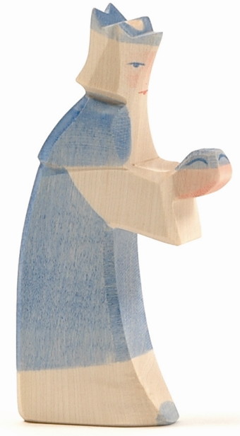 Ostheimer - König blau - WeihnachtskrippeClassic 14cm Ostheimer - König blau - Spielräume für Kinderträume - spielend die Weihnachtsgeschichte erleben - mit den Ostheimer - Weihnachtsfiguren Handgestaltetes Holzspielzeug aus Ahorn- und Eschenholz von Ostheimer, weckt und fördert die Kreativkräfte im Kind und regt zum phantasievollen Spielen an Kinder tauchen mit diesem pädagogisch wertvollen Spielzeug, eines der vielen Holzspielwaren aus dem Holzlaedle.com, in ihre Welten ein und spielen die Weihnachtsgeschichte nach. Das Design, mit den weichkantigen Schliffen und seiner Farbgebung, versucht das jeweils Typische der Formen und Bewegungen einzufangen, und ermöglicht den Kindern das Erkennen, der es umgebenden Welt. Die transparente Handbemalung der Figuren unterstützt die natürliche Oberflächenstruktur des Holzes, leichte Farbunterschiede sind nicht als Fehler anzusehen, sondern sind ein Merkmal für handgestaltetes Spielzeug. Die Figuren sind mit für Kinder unbedenklichen Farben und Ölen behandelt. Nicht geeignet für Kinder unter 3 Jahren, trotz guter Qualität und gewissenhafter Verarbeitung des Holzspielzeugs, kann es zu Absplitterungen kommen, die für Kinder unter 3 Jahren zur Verschluckgefahr werden können. Ostheimer - König blau - hergestellt in Deutschland |