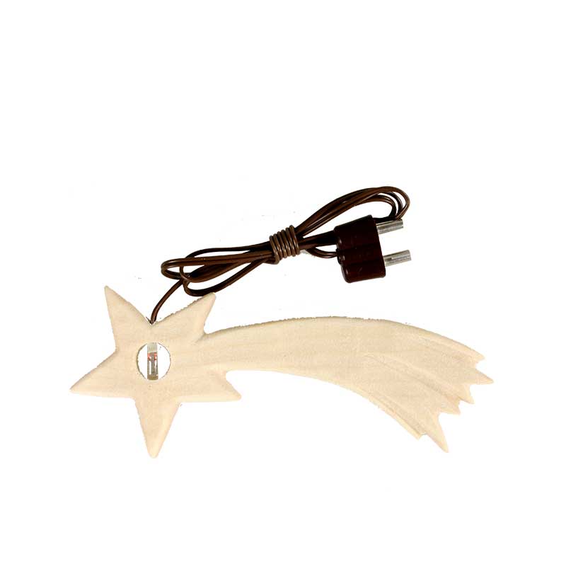 Komet beleuchtet aus Holz, ca. 9cm Weihnachten mit der geschnitzten Weihnachtskrippe aus Holz. Neben der großen Auswahl an verschiedenen Krippen - Modellen, finden Sie im Holzlädle auch das passende Krippenzubehör. Mit unserem Krippenzubehör, wie: Laternen, Trafos, Verbindungskabel, Flackerlichter, Brunnen, Brücken und vieles mehr, können Sie Ihre Weihnachtskrippe liebevoll ausschmücken und beleuchten. Wenn Sie anderes Krippenzubehör suchen, fragen Sie einfach bei uns nach. Holz-Komet beleuchtet für Ihre Krippe Die Gesamtlänge dieses, aus Holz gefertigten Kometen beträgt ca. 9 cm. Er ist mit ca. 50 cm Kabel und Stecker sofort einsatzbereit in Ihre Krippe. |