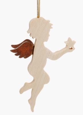 Ahornholzengel mit rostig-veredelten Stahlflügeln zum Hängen, 8 cm