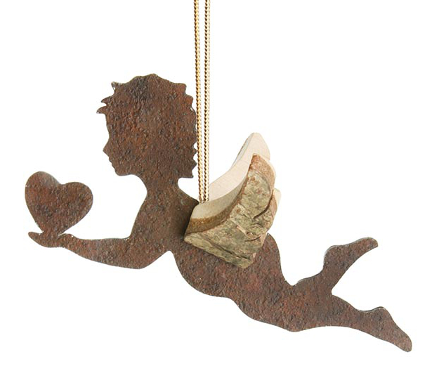 Rostig-veredelter Stahlengel mit Holzflügeln zum Hängen, 7cm