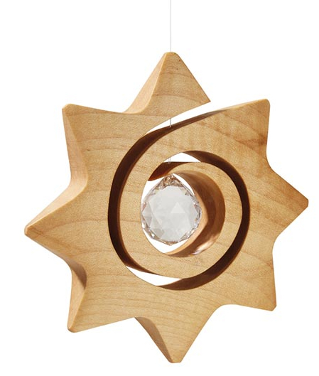 Spiralstern mit Kristall, Durchmesser 10cm Unsere Fensterdekorationen lassen den Raum regelrecht erstrahlen. Auch in der jahrtausendalten chinesischen Lehre des Feng Shui spielen Kristalle eine zentrale Rolle. Ein im Fenster hängender Regenbogenkristall bringt mit der Brechung des Lichts positive Energie in den Raum. Die handwerklich gefertigten Naturholzobjekte bilden dafür eine hervorragende Basis. Mit den funkelnden Akzenten aus feinsten geschliffenen Swarovski-Kristallen ist der Fensterschmuck perfekt. |
