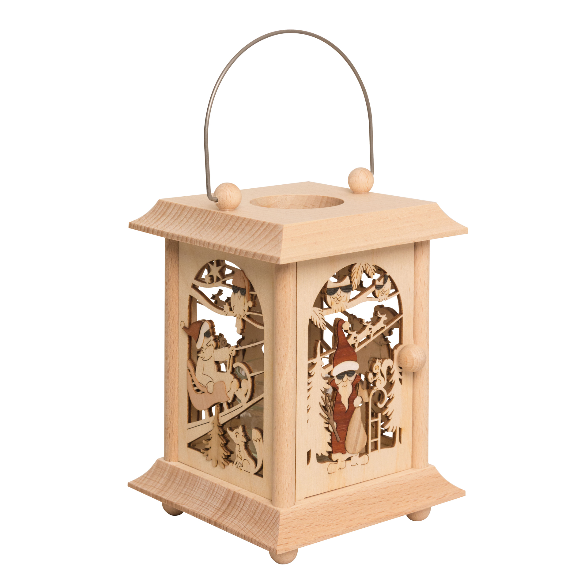 Tischlaterne Nikolaus Unsere Tischlaterne Nikolaus sorgt für eine ruhige und angenehme Stimmung in den Abendstunden. Die Laternen gibt es mit zahlreichen Motiven aus Edelholzfurnier, so finden Sie für jede Jahreszeit die Passende. LxBxH 11,5x11,5x17 cm Die Laterne mit aufgesetzten Applikationen aus Edelholzfurnieren ist geeignet für alle Teelichte und Stumpenkerzen, die in das dazugehörige Glas passen und nicht höher als dieses sind. Sie ist während der Benutzung nicht zum Herumtragen oder Aufhängen am Drahtbügel geeignet. Alle Produkte aus dem Hause Kuhnert werden von unseren Mitarbeitern in Deutschland in Handarbeit aus nachhaltig angebauten Hölzern hergestellt. |